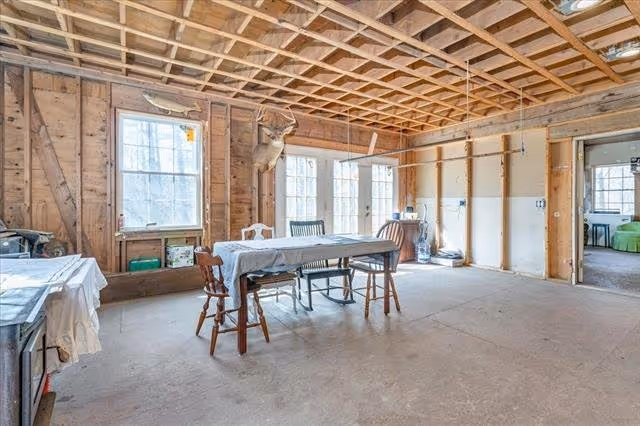 The possibilities are endless - Create your own trails, airbnb the cabin with loft, add campsites, log the land & create an income, or create a peaceful oasis. Hunter's paradise! Home just needs flooring and drywall - Currently only 1 bedroom downstairs but permitted for 3 bedrooms and 2 bathrooms. 2nd floor & attic are ready to be finished to your taste. Walkout basement with lots of space to finish as well. Private road leading up to the house.