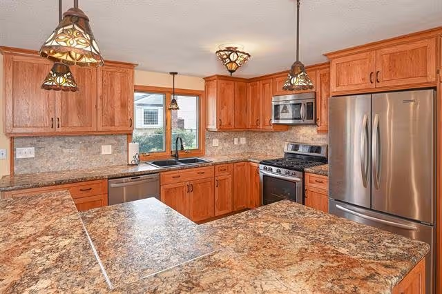 Inside you'll come home to a beautiful custom updated kitchen with island & stainless steel appliances, an open concept dining/living room for entertaining, a nice deck off the kitchen slider and a huge flat yard. Large master bedroom with ensuite bathroom, and walk-in closet. Downstairs you'll have additional family room space with a half bathroom and laundry.