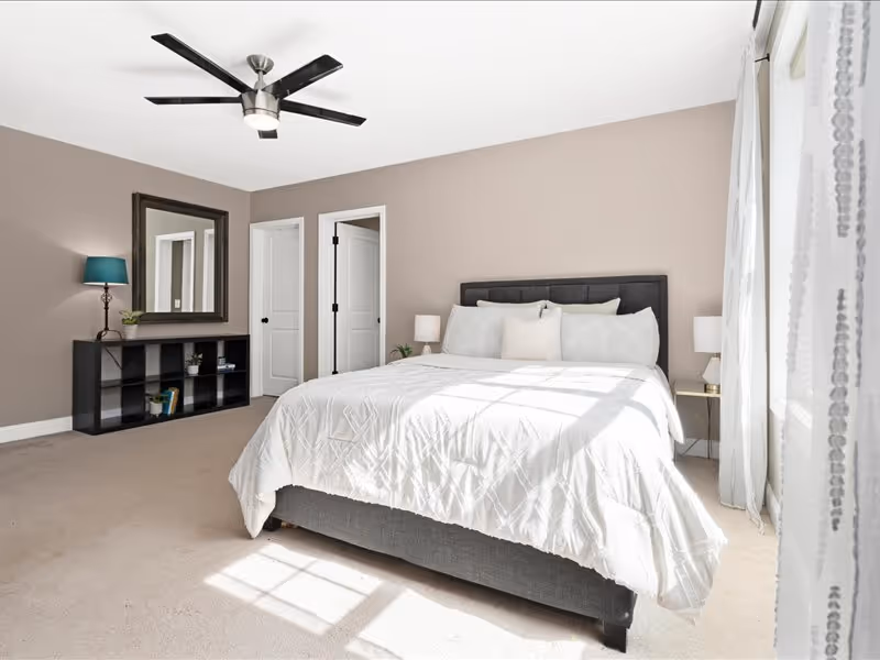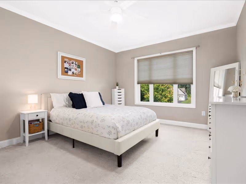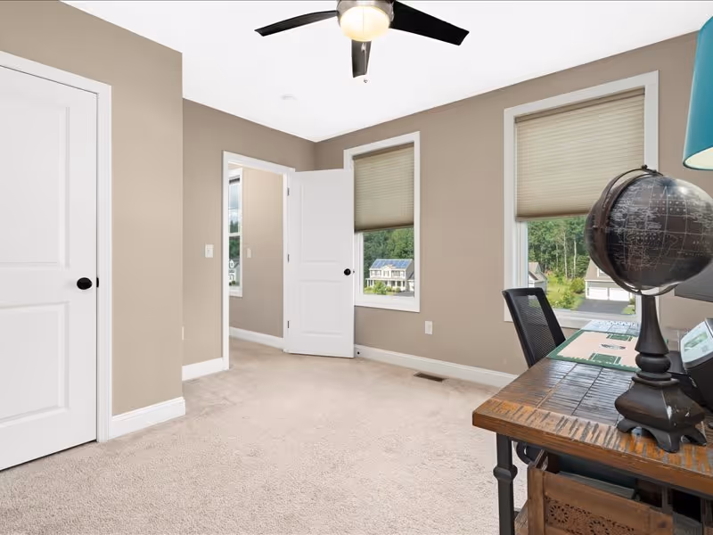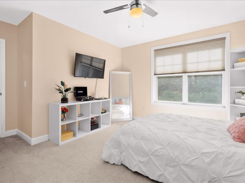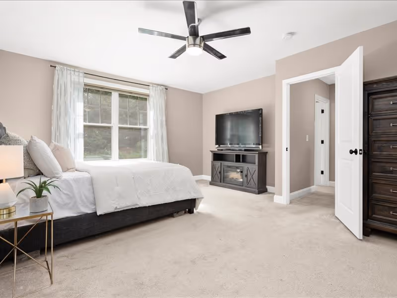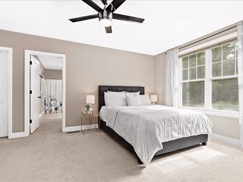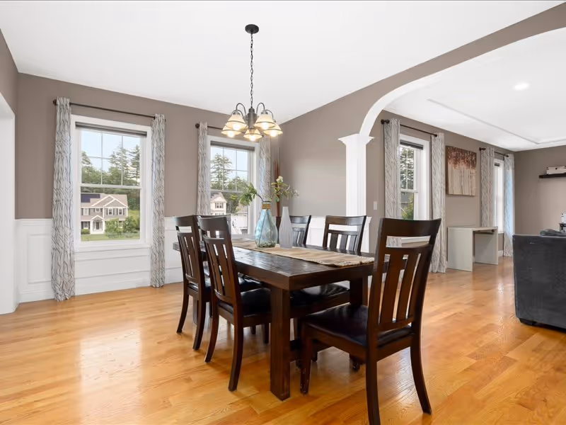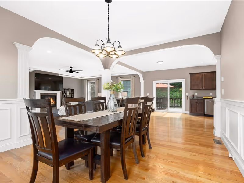 The separate dining room exudes elegance with its wainscoting details. Conveniently, the first floor also includes a bedroom, half bath, and laundry facilities. Upstairs, the primary suite offers two walk-in closets, providing ample storage space. Enjoy privacy and light control with top-to-bottom blinds throughout the property.