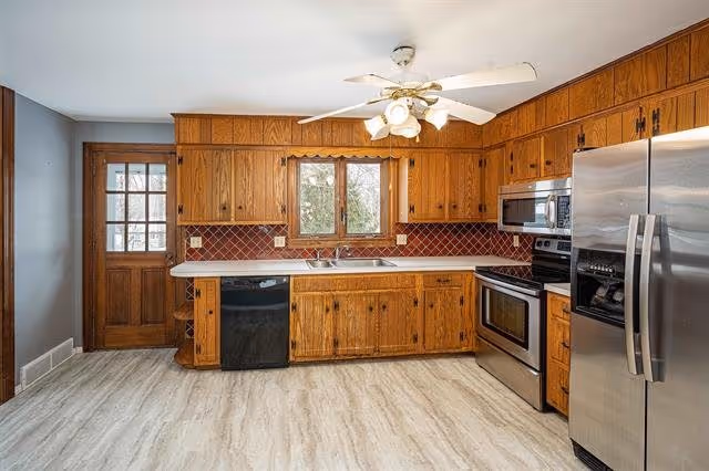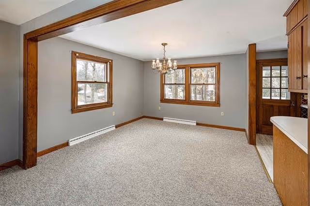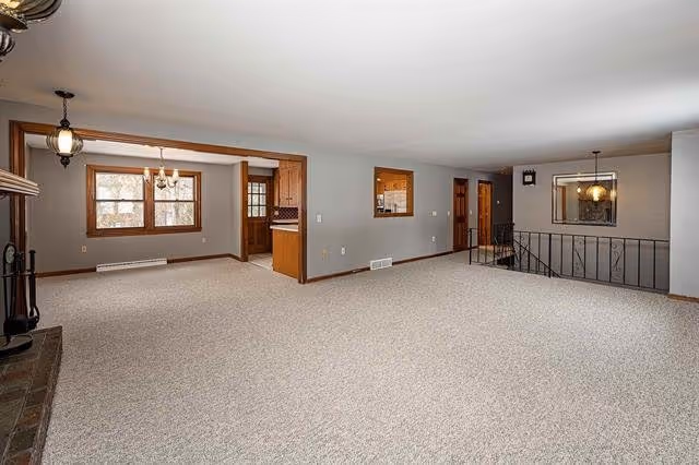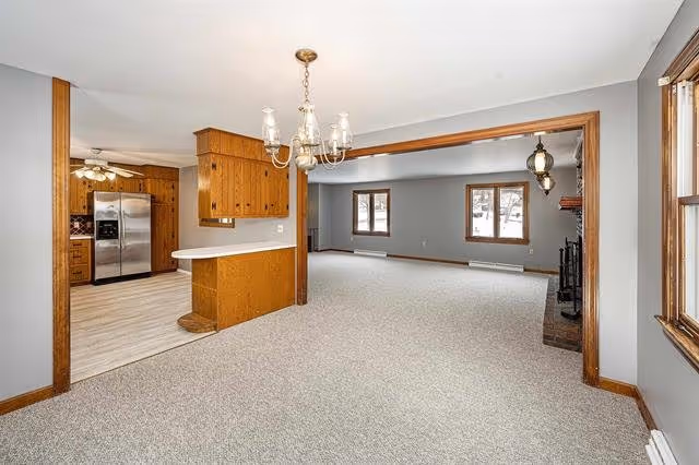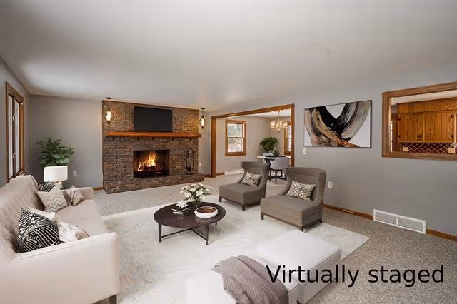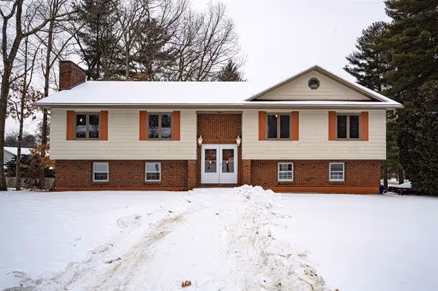 Nothing to do but move in! Located in the beautiful town of Hudson, this split level home is ready for its new owner. With new carpets, paint and flooring throughout, this home is sure to delight. Come in through the impressive wooden doors into the open concept living room and dining with an large wood fireplace.