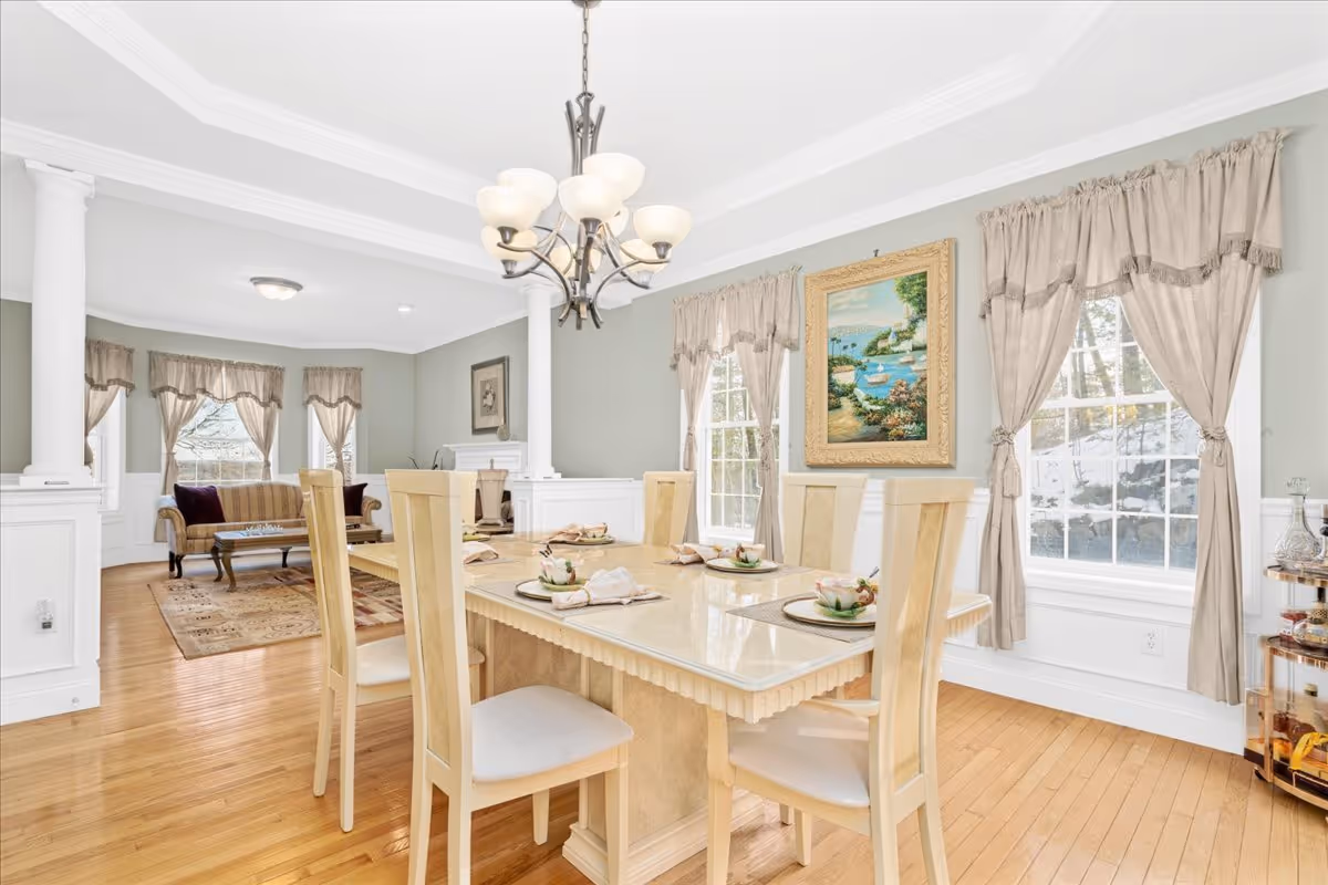 Welcome to Mount Miner Estates, a harmonious blend of timeless elegance and modern convenience nestled in Auburn. Upon entry, the newly refinished hardwood floors guide you through a luminous foyer, setting the stage for refined living. The formal dining and living rooms exude sophistication with decorative columns, tray ceilings, and exquisite wainscoting—an ideal backdrop for gatherings or cherished moments.