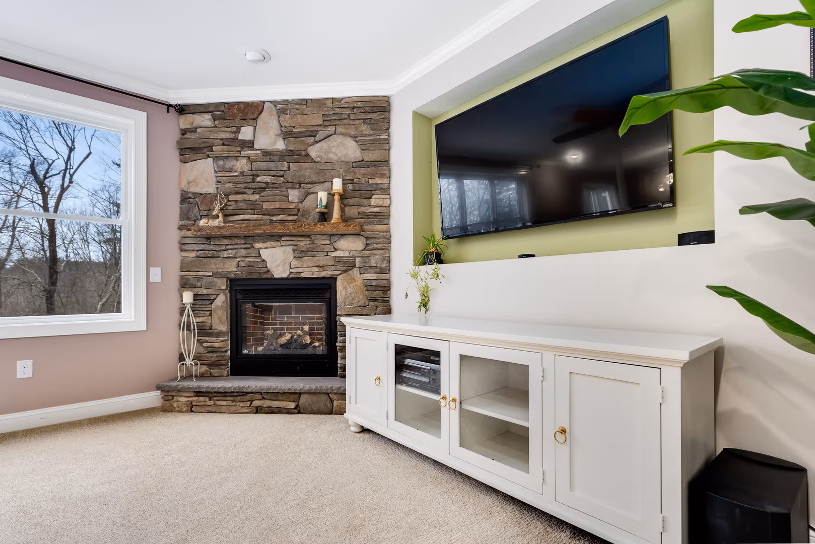 Step into a realm of refined living in this meticulously maintained original owner's residence, distinguished by exclusive builder upgrades. The stone facade beckons you into a timeless haven, with the gourmet kitchen as the heart of this home, featuring a stylish island, stainless steel appliances, and a built-in cabinet. The step-down living room is a masterpiece, boasting a built-in for your TV and a cozy corner gas fireplace. Crown molding enhances the elegance throughout the house.
