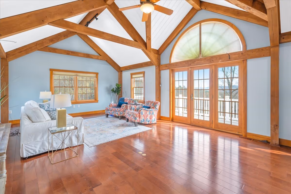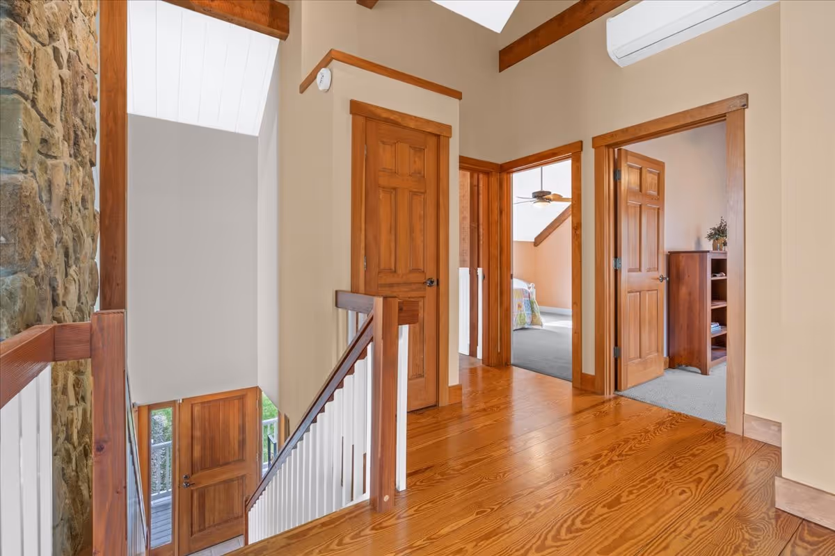 This 4,500 square foot home offers stunning views from every room with floor to ceiling windows which allow for sunrises to start your days with inspiration and sunsets to end them in a blaze of glory. Cherry and pine hardwood floors add light and warmth; while the floor to ceiling stone fireplace and cathedral ceilings lend an air of grandeur to this architectural wonder graced with year-round sunlight.